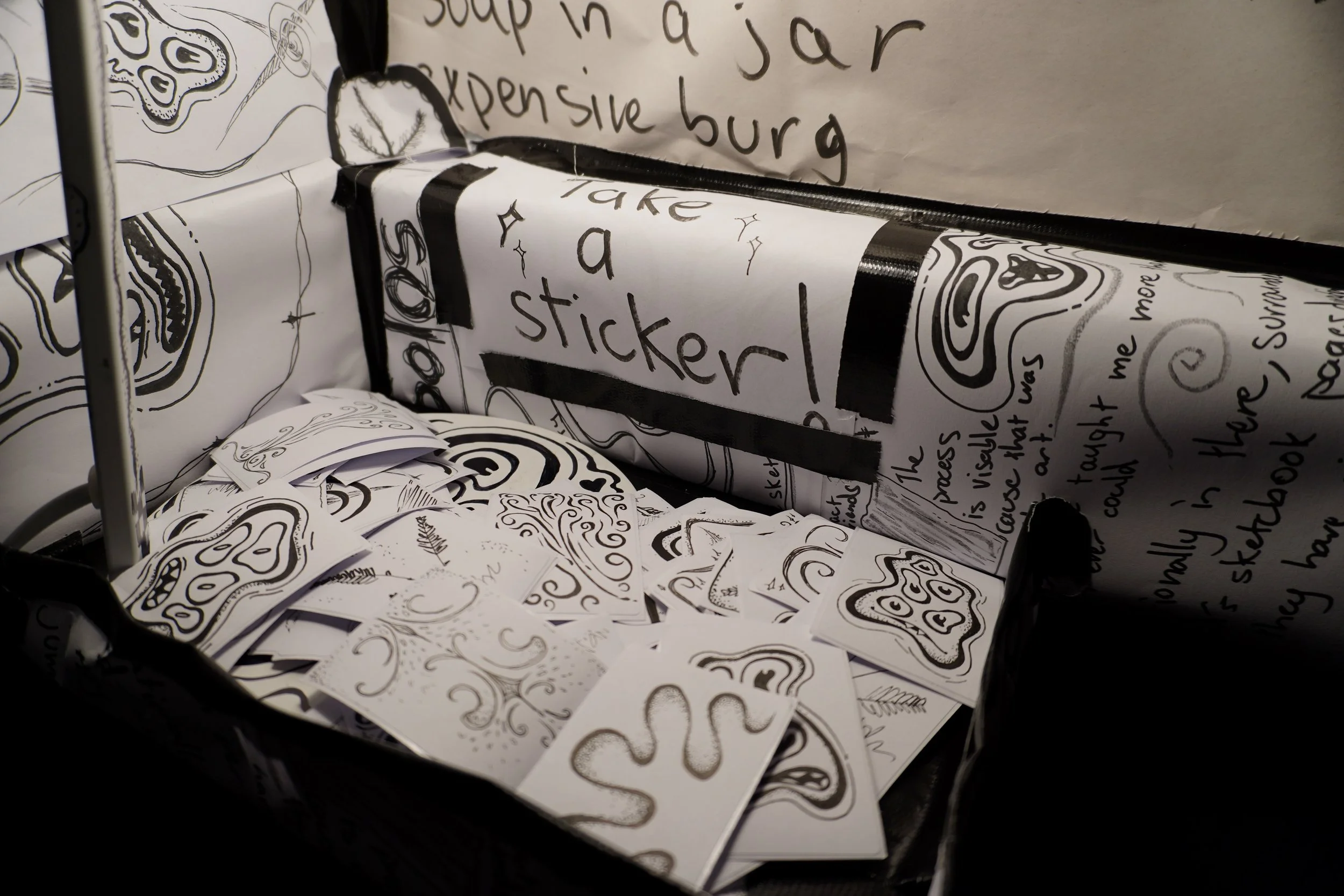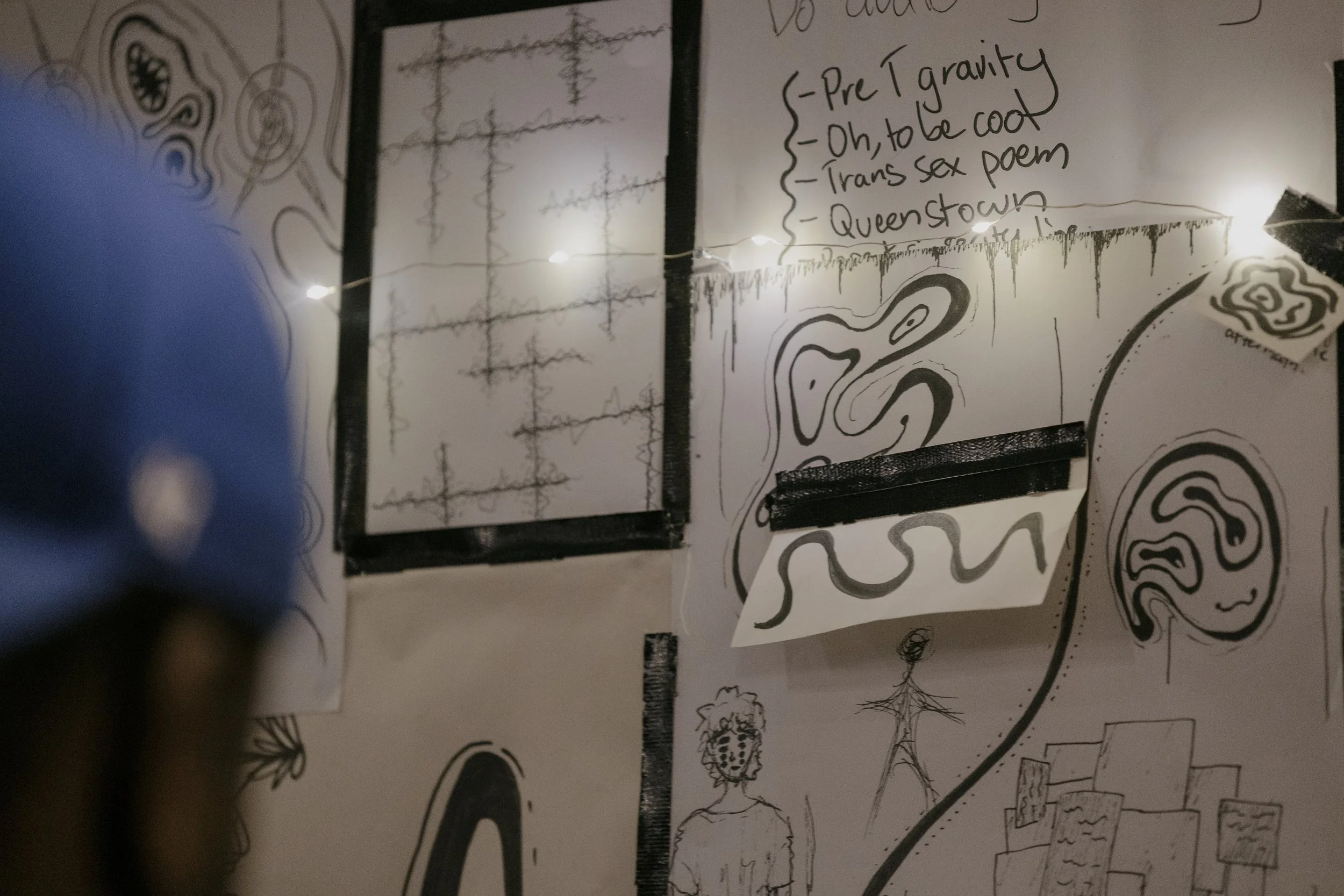 Written, made, and performed by Cynda Beare, blakinq (blak in north queensland) is an immersive sketchbook experience. Poetry, notes from class, drawings, trans stuff, mob stuff, fairy lights, etc. Sit, discover, listen, breathe, and take a sticker as you leave.